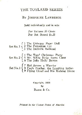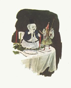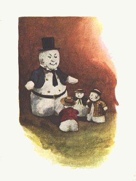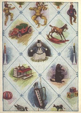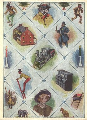 However, the candles were allowed to burn, for the door-bell rang a moment later, and there was Grandpa from-far-away, and Aunt Mary and Uncle Oscar and the people from the house next door. You know all about how Christmas dinner tastes, so we won't tell you about this dinner, except to mention that the turkey was a little more of a golden brown than any other turkey you've seen. And the potatoes were so fluffy they looked like snow, and everyone's name was spelled out in red pimentos on the salad and the nuts and raisins were simply delicious. Oh, yes, and the plum pudding wasn't too rich for the children either. 35 |