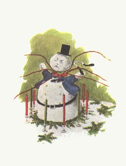 | there were plenty of lovely things still in place. The children were trying to keep the tree "all trimmed" as they said, to show their grandpa. "How do you do?" said a very sweet little voice suddenly. Mr. White would have jumped, if he could. But he had no legs and legs are absolutely necessary to anyone who jumps. Then he noticed that something bright and shiny was being swung before his face and a moment later he saw that it was one of the tinsel stars. "Who's swinging that star?" asked Mr. White, trying to make his voice sound very deep and stern. "I am," giggled the little voice. | |