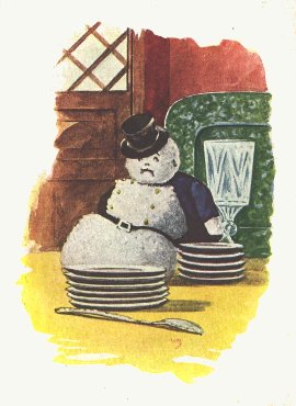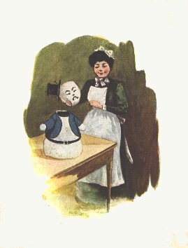 too funny for words. Your hat is over one ear. You look positively foolish." All the time Hannah was talking, she was carrying Mr. White out to the kitchen and when she put him down on the kitchen table, to put his head on for him, she went right on telling him how foolish he looked. But she needed the room on the kitchen table for her dishes, so back to the dining room she carried Mr. White again, and plumped him down between two piles of clean plates. His hat fell over one eye and he slid down till he leaned against a goblet. Hannah laughed at him once more and then she went back to the 41 |